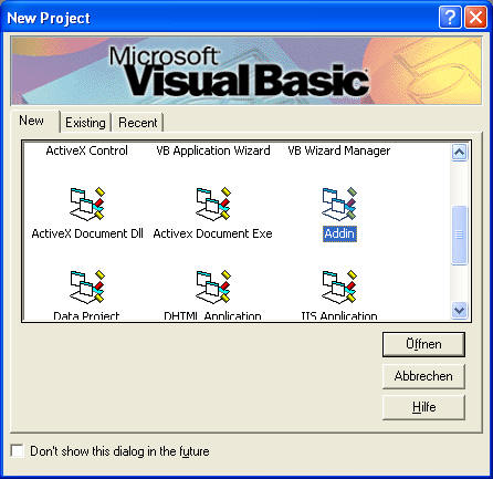 konfigurieren, entweder als Add-In Projekt oder als ActiveX DLL.